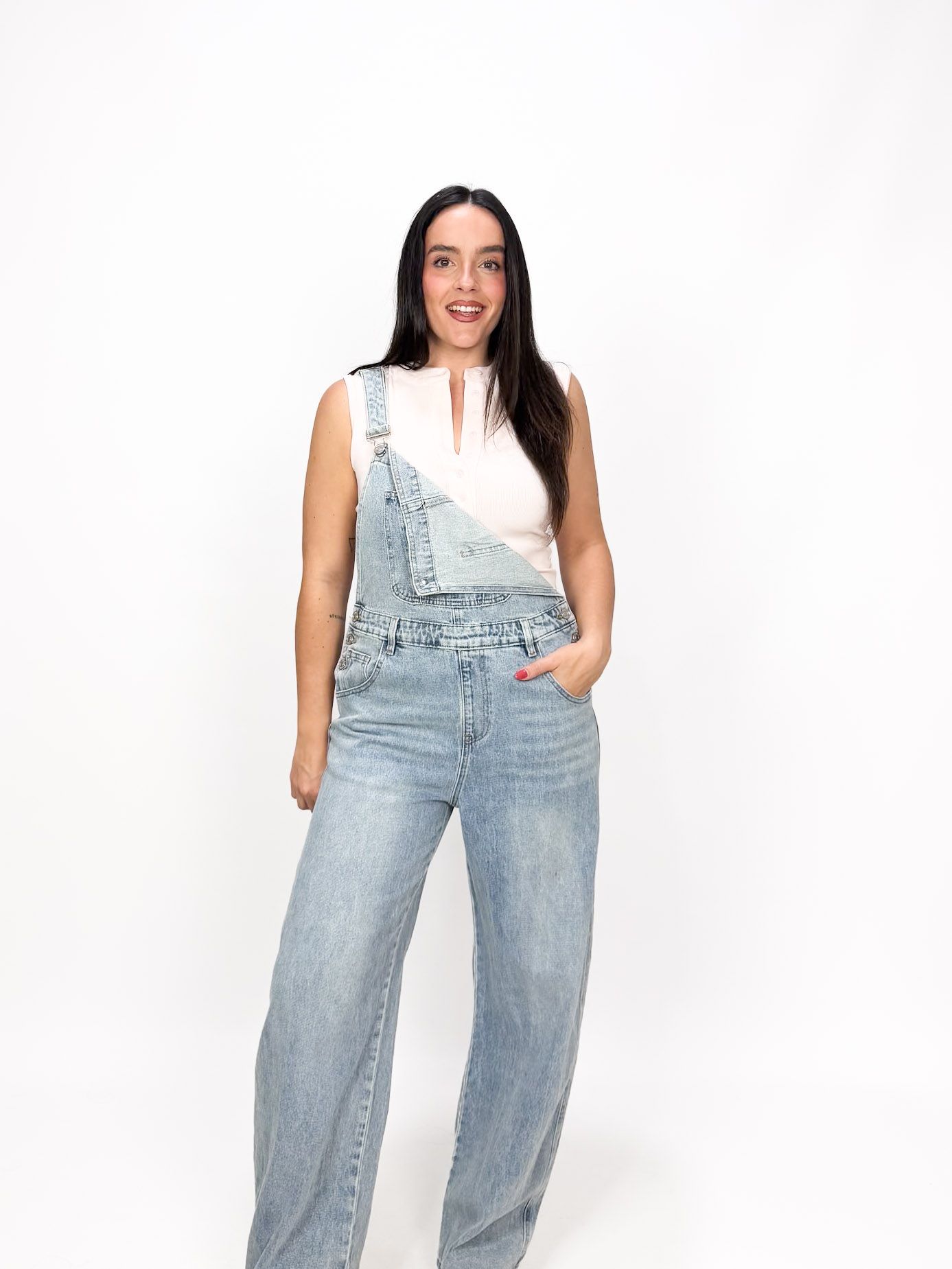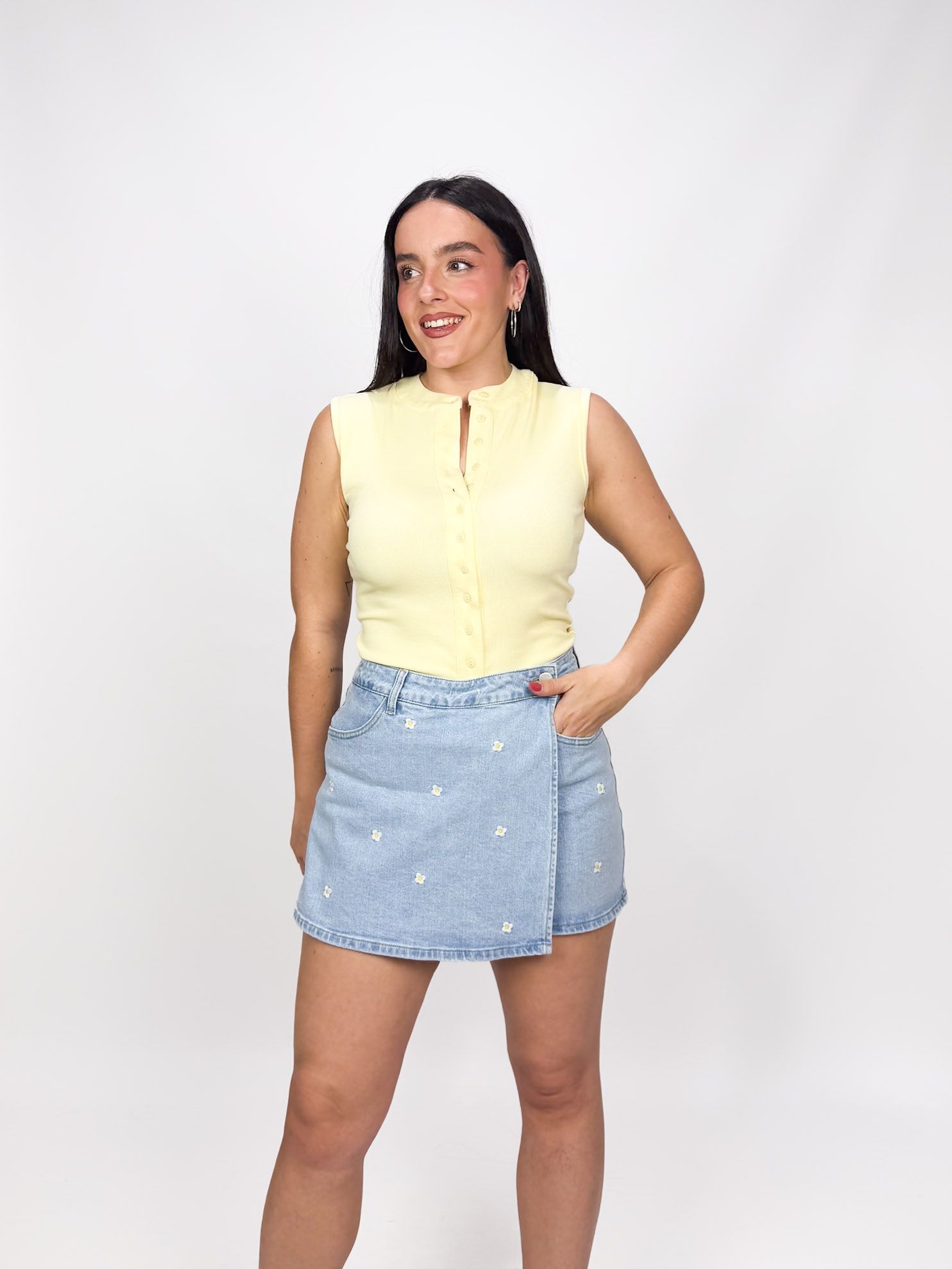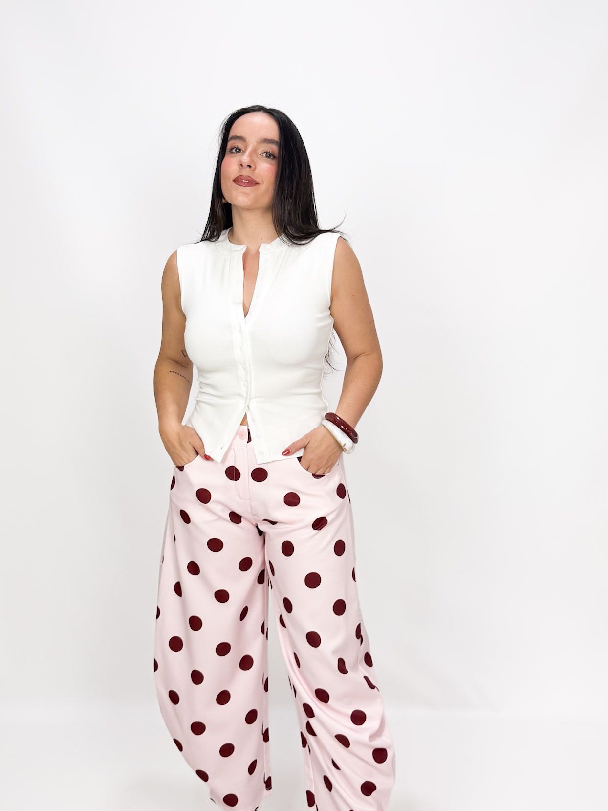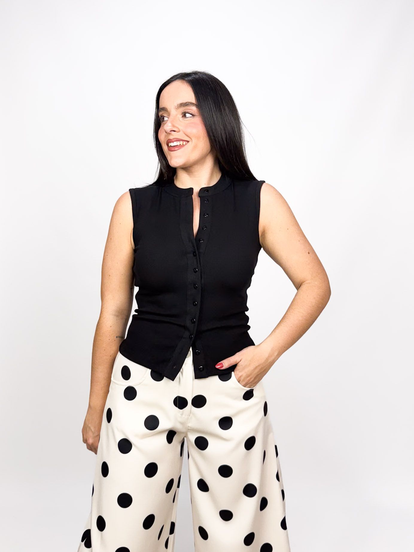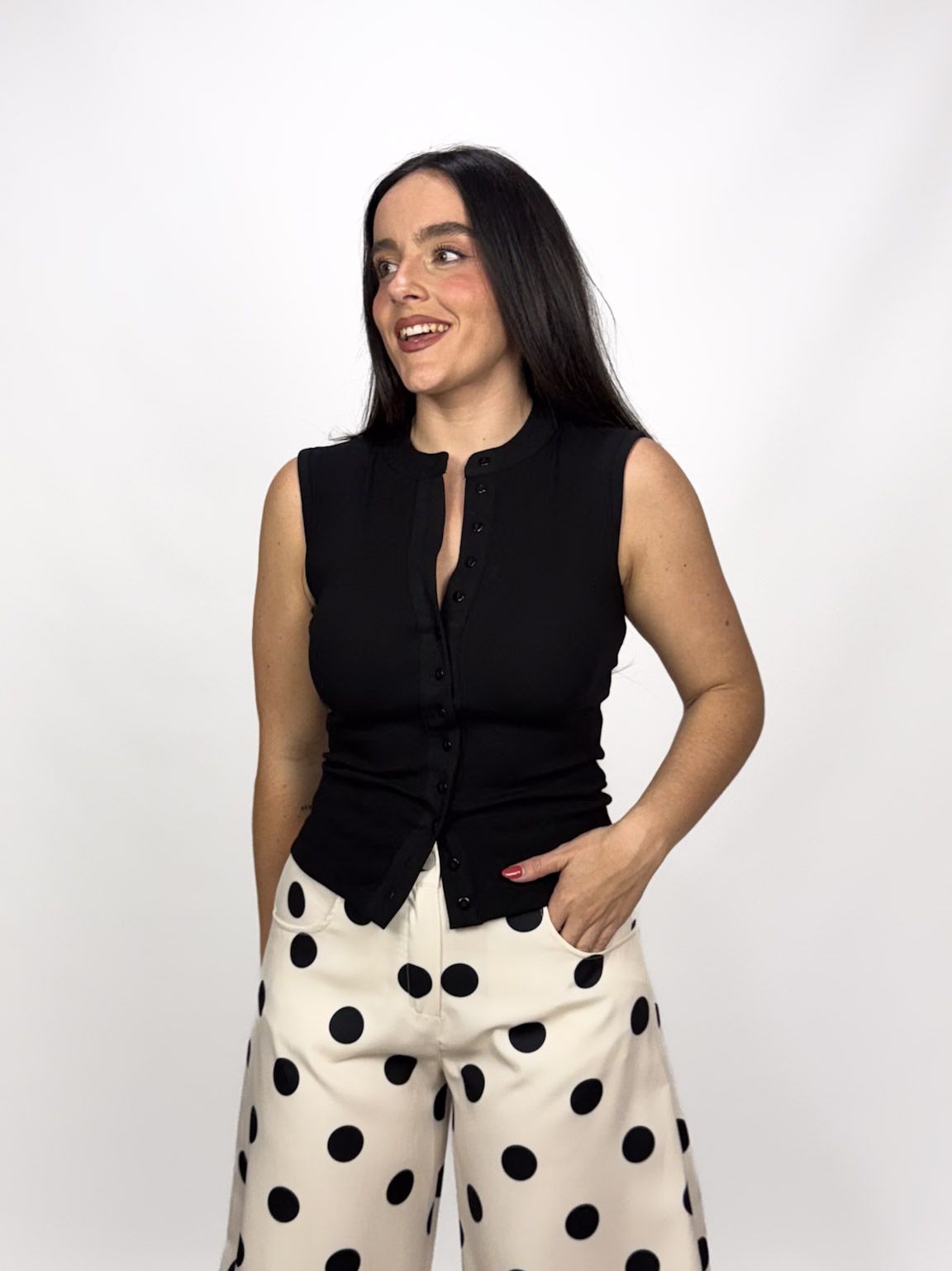 Mari Tere mide 1.72 m y lleva talla M/L